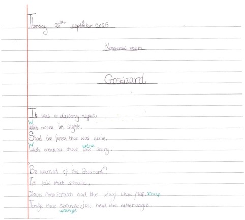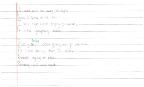 This week’s WWO comes from a year 4 pupil at Old Ford Primary Academy. The remit was to, as an independent piece of writing, write a poem based on our poetry unit.